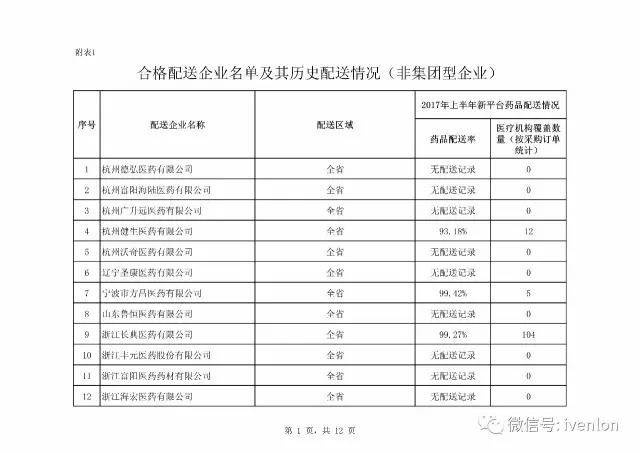 根據(jù)《省衛(wèi)生計(jì)生委等六部門(mén)關(guān)于在全省公立醫(yī)療機(jī)構(gòu)藥品采購(gòu)中推行“兩票制”的實(shí)施意見(jiàn)》(浙衛(wèi)發(fā)〔2017〕47號(hào)),以及我中心發(fā)布的《關(guān)于調(diào)整公立醫(yī)療機(jī)構(gòu)在線(xiàn)交易產(chǎn)品配送關(guān)系的公告》、《關(guān)于開(kāi)展“兩票制”視同生產(chǎn)企業(yè)等名單申報(bào)工作的通知》等要求,經(jīng)公示、核查浙江省醫(yī)藥購(gòu)銷(xiāo)領(lǐng)域商業(yè)賄賂不良記錄等信息等程序,并經(jīng)省藥品集中采購(gòu)工作領(lǐng)導(dǎo)小組辦公室同意,現(xiàn)將合格配送企業(yè)、視同生產(chǎn)企業(yè)、藥品調(diào)撥可不視為一票集團(tuán)型配送企業(yè)的名單予以公布(具體詳見(jiàn)附件),并將有關(guān)事項(xiàng)通知如下: