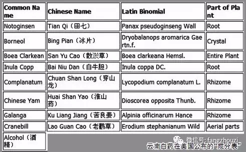 但是對于懂英文的人來說,云南白藥的成分卻不是什么秘密。2002年,云南白藥想要打入美國市場,向美國食品藥品管理局(FDA)申請把云南白藥酊作為膳食補(bǔ)充劑(也就是國內(nèi)所謂“保健品”)上市。為什么不申請作為藥物上市呢?因?yàn)橐鳛樗幬镌诿绹鲜斜仨氂信R床試驗(yàn)?zāi)軌蜃C明其療效和不良反應(yīng),云南白藥并沒有這方面的數(shù)據(jù),證明不了,所以只能申請作為保健品上市。不管是藥品還是保健品,美國都不允許有什么國家保密配方,都必須詳細(xì)列出所有的成分。云南白藥在美國的代理商在提交FDA的申請文件中,就列出了云南白藥酊的“全部成分”,里面共有八種藥材。但是云南白藥要作為保健品上市,卻聲稱有未經(jīng)證實(shí)的療效,這是違反美國法律的,所以它的上市申請被駁回。這些往來文書都是公開可查的,在FDA網(wǎng)站搜一下就能知道報(bào)給FDA的云南白藥酊的成分。云南白藥即使能在美國上市,也只是在華人中有市場。在美國東方店買到的云南白藥,里面的說明書用中英兩種文字詳細(xì)列著云南白藥的成分及其含量,與上報(bào)FDA的云南白藥酊相比,只是少了冰片,其他都相同。所以云南白藥的成分只是對國內(nèi)消費(fèi)者保密,對美國消費(fèi)者則是公開的,不知道這是否構(gòu)成泄密?