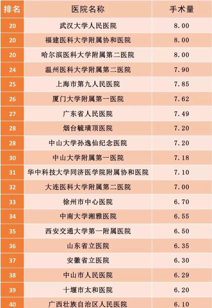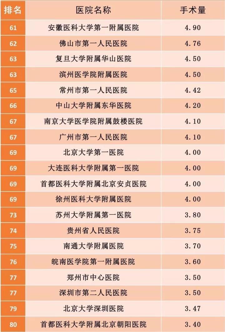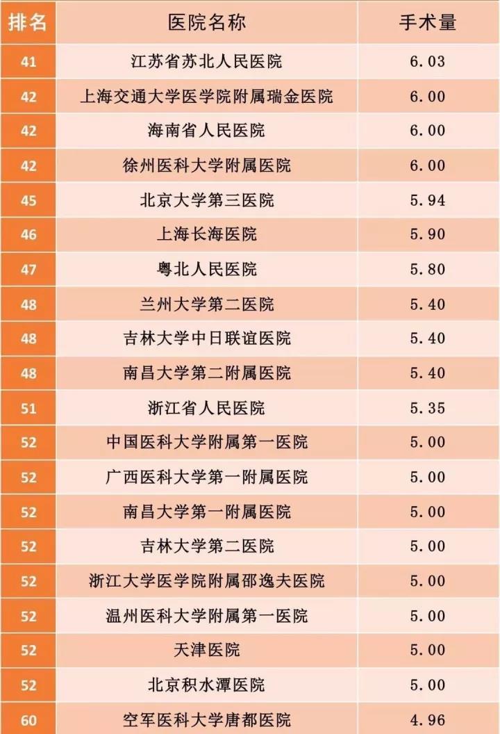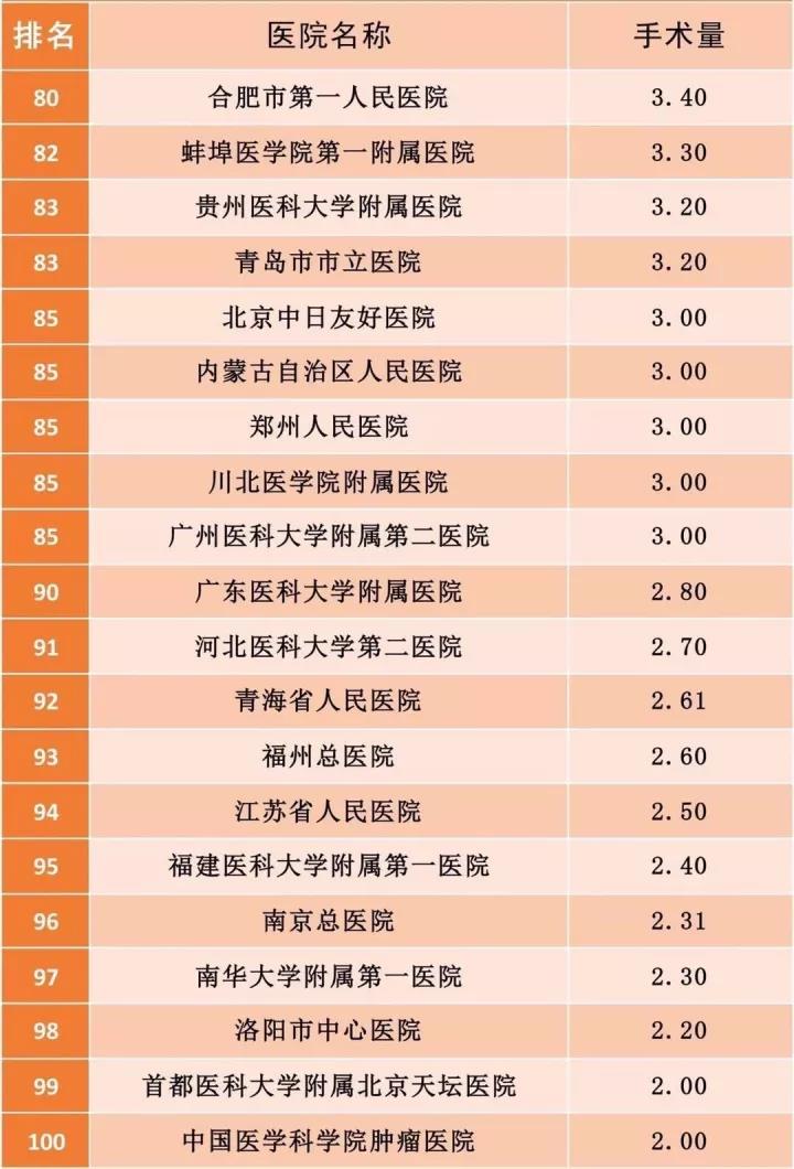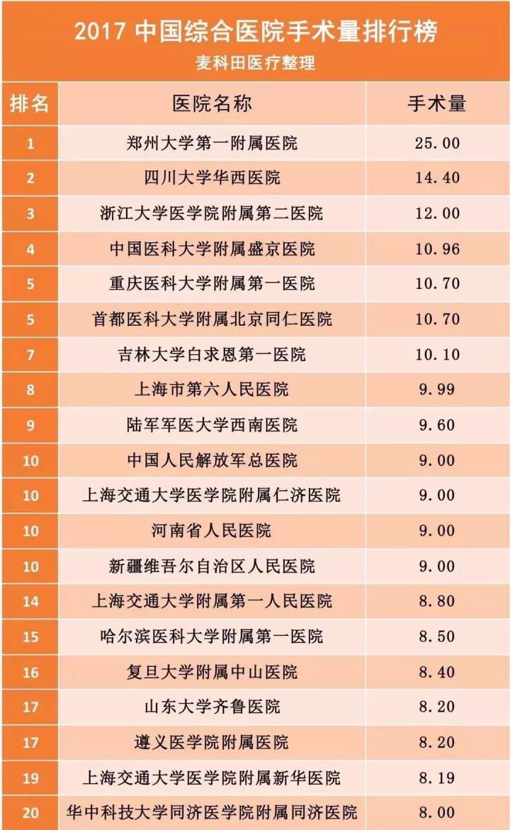 2017中國(guó)綜合醫(yī)院手術(shù)量TOP100排行榜出爐!