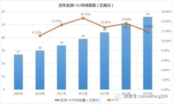 CSO(Contract Sales Organization),即銷售外包組織,是受制藥公司的銷售委托,承擔(dān)藥品銷售推廣工作的專門組織,主要服務(wù)于新藥上市銷售階段。CSO與CRO、CMO一起構(gòu)成醫(yī)藥合同外包組織,分別服務(wù)于醫(yī)藥行業(yè)的銷售、研發(fā)、生產(chǎn)三大環(huán)節(jié),囊括藥物生命周期的各個主要階段。由于專業(yè)化和規(guī)模經(jīng)濟(jì)的優(yōu)勢,全球范圍內(nèi)的醫(yī)藥外包仍屬于朝陽產(chǎn)業(yè)。(推薦閱讀:《一家上市一家并購,研發(fā)助推器的CRO行業(yè)進(jìn)入并購整合新常態(tài)》)