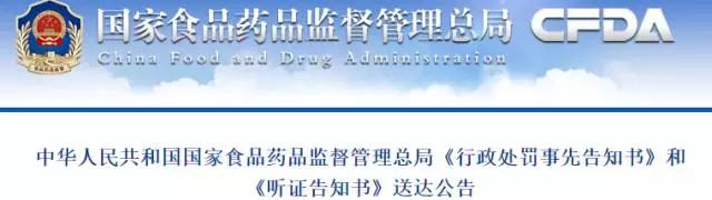 公告稱,因其他方式無法送達(dá),食藥監(jiān)總局依法向該公司以公告的形式送達(dá)《行政處罰事先告知書》(國食藥監(jiān)械罰告〔2017〕1號)和《聽證告知書》(國食藥監(jiān)械聽告〔2017〕1號)。限該公司在本公告發(fā)出之日起60日內(nèi),到總局領(lǐng)取前述告知書(聯(lián)系電話:86-10-88331302/88331368),逾期不領(lǐng)取即視為送達(dá)。