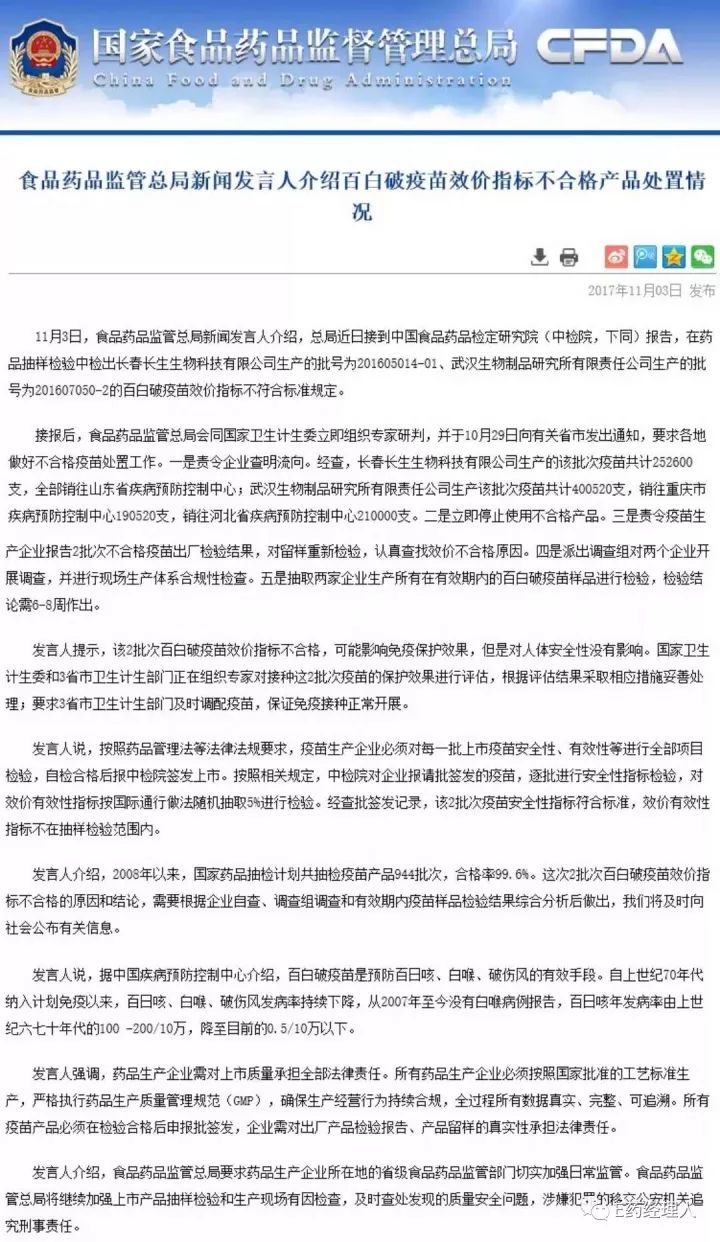 以上為CFDA官方網(wǎng)站發(fā)布全文