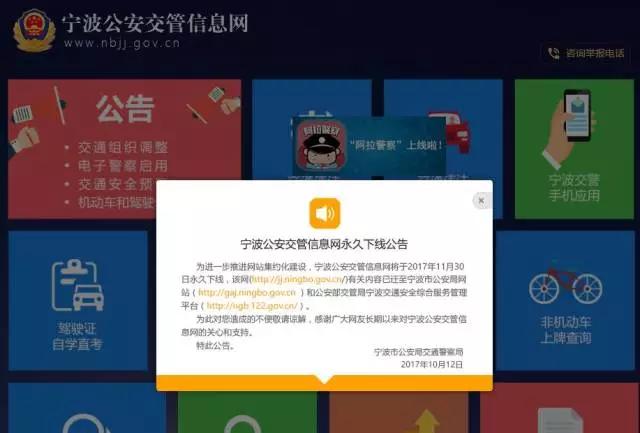 (小布發(fā)現(xiàn),比如寧波公安交管信息網(wǎng)已于10月12日在其網(wǎng)站首頁發(fā)布永久下線公告)