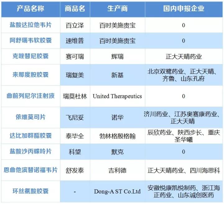 表1 2017年FDA新批藥物被國內(nèi)企業(yè)研發(fā)跟進(jìn)情況