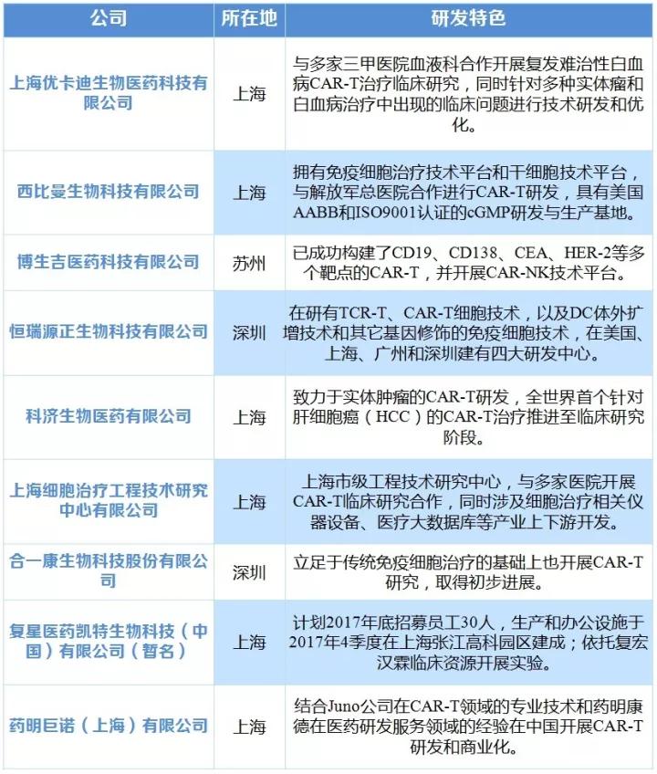表7 國內(nèi)多家企業(yè)正在進(jìn)行 CAR-T 研發(fā)