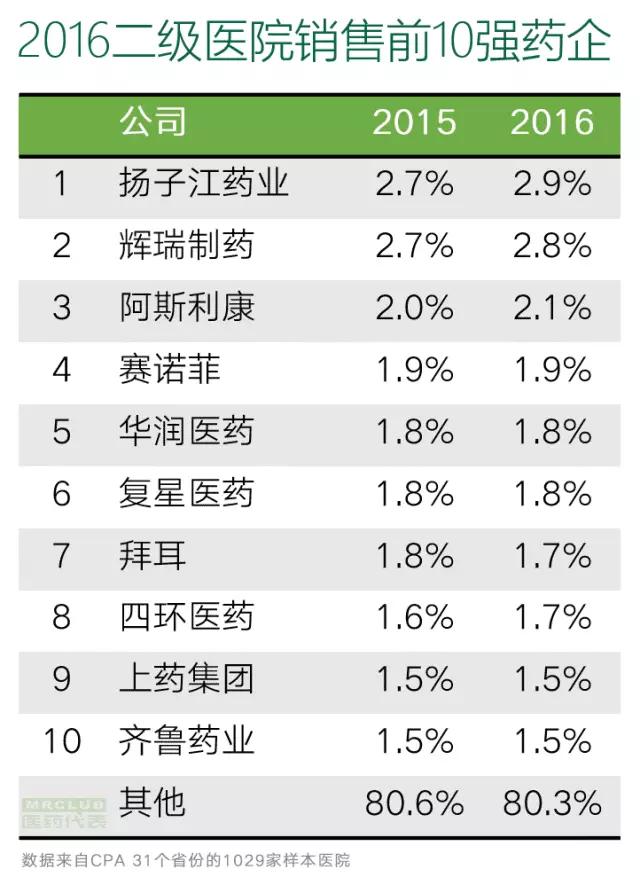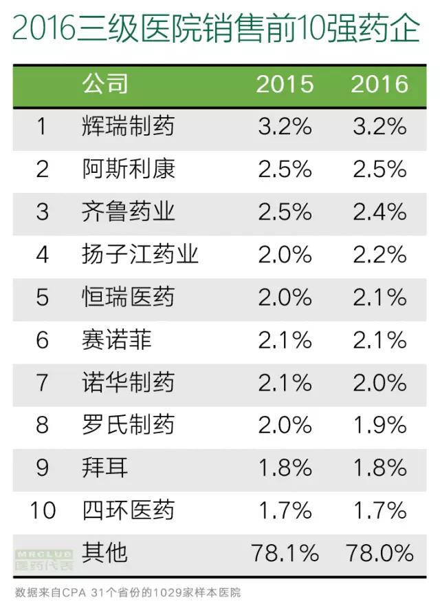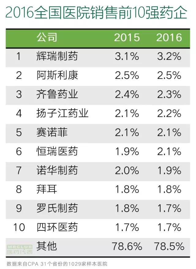 2016年國內(nèi)醫(yī)院銷售排名10強(qiáng)藥企