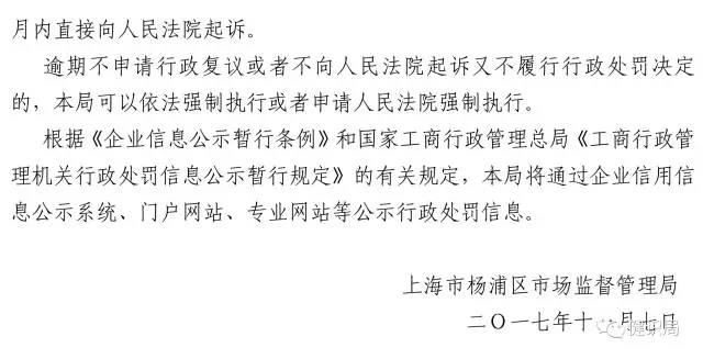 其中,逾期繳納罰款的,上海市楊浦區(qū)市場監(jiān)督管理局可依據(jù)《中華人民共和國行政處罰法》第五十一條第(一)項的規(guī)定,每日按罰款數(shù)額的百分之三加處罰款。