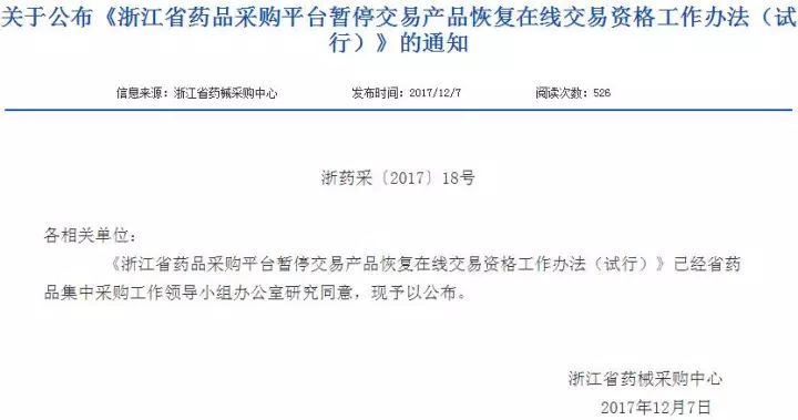 浙江省藥品采購(gòu)平臺(tái)暫停交易產(chǎn)品恢復(fù)在線(xiàn)交易資格工作辦法(試行)