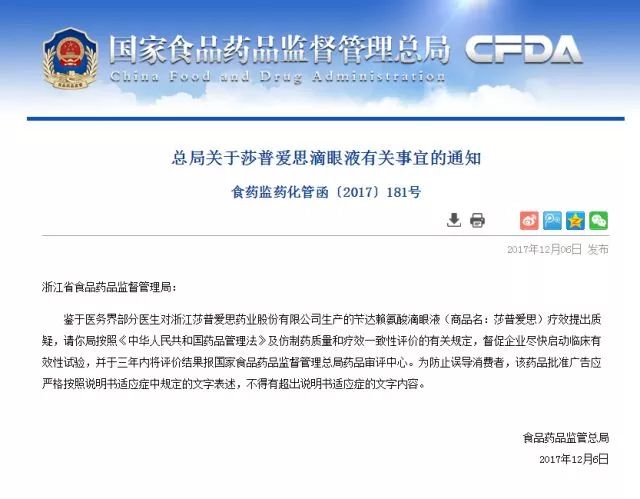 總局關(guān)于莎普愛(ài)思滴眼液有關(guān)事宜的通知