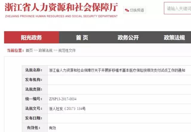 近日,浙江省人社廳下發(fā)《關(guān)于開展肝移植術(shù)基本醫(yī)療保險按績效支付試點(diǎn)工作的通知》,決定開展肝移植術(shù)基本醫(yī)療保險按績效支付試點(diǎn)。