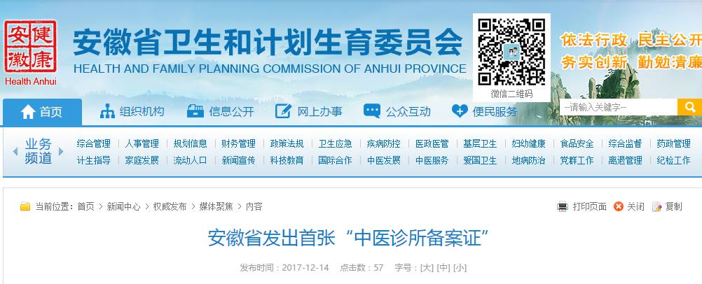 12月1日,中醫(yī)診所備案制正式實施,僅僅過了4天,安徽省發(fā)出第一張“中醫(yī)診所備案證”。