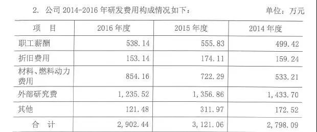 公司2014-2016年研發(fā)費用構(gòu)成如下