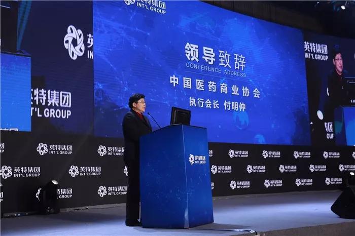 中國醫(yī)藥商業(yè)協(xié)會執(zhí)行會長付明仲致辭,代表協(xié)會表示熱烈的祝賀,肯定了英特為協(xié)會事務(wù)、行業(yè)發(fā)展做出的貢獻,祝福英特在新起點上揚帆遠航,不斷創(chuàng)新,為健康中國、健康浙江做出新貢獻!