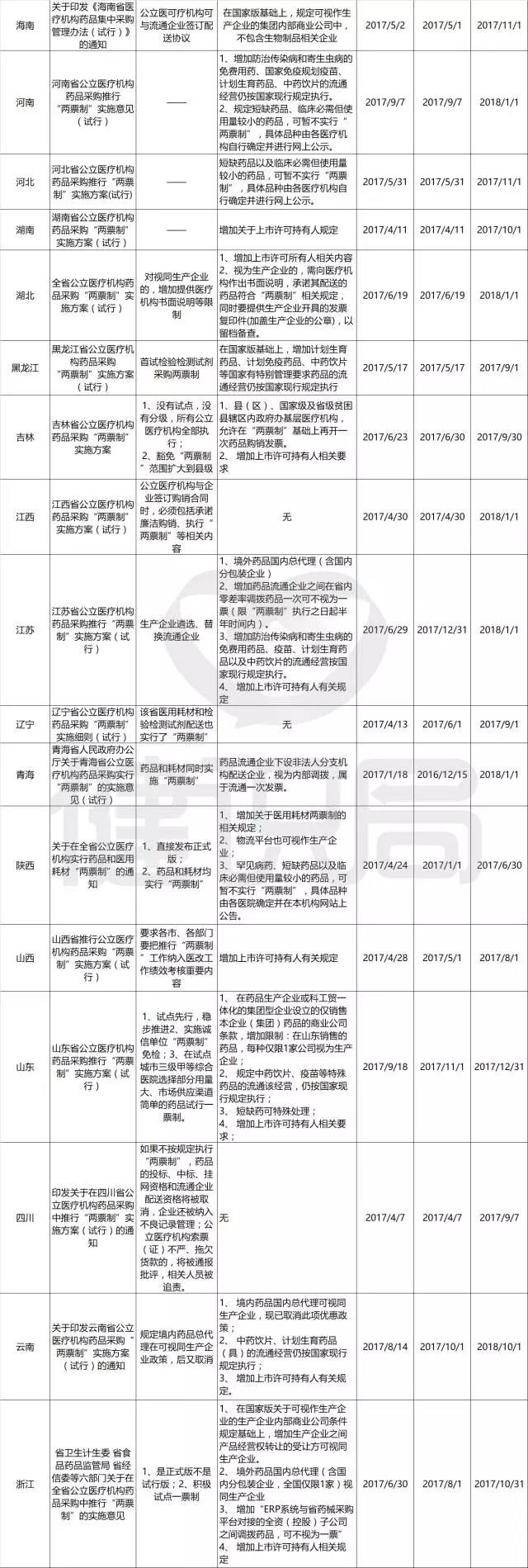 健識(shí)君梳理,自2016年10月安徽省執(zhí)行“兩票制”以來(lái),除港澳臺(tái)地區(qū)外,全國(guó)31省、直轄市、自治區(qū)均已發(fā)布“兩票制”實(shí)施方案或轉(zhuǎn)發(fā)國(guó)家版實(shí)施意見(jiàn),明確執(zhí)行“兩票制”時(shí)間表。國(guó)家醫(yī)改辦體改司統(tǒng)計(jì),目前,全國(guó)已有至少2/3的城市在公立醫(yī)院藥品采購(gòu)中,執(zhí)行“兩票制”。