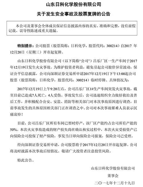 該公司股票一度停牌。目前,公司昌樂廠區(qū)所有車間已暫時(shí)停產(chǎn),該廠區(qū)產(chǎn)能約占公司所有產(chǎn)能的50%。事故發(fā)生的具體原因相關(guān)部門正在調(diào)查之中。