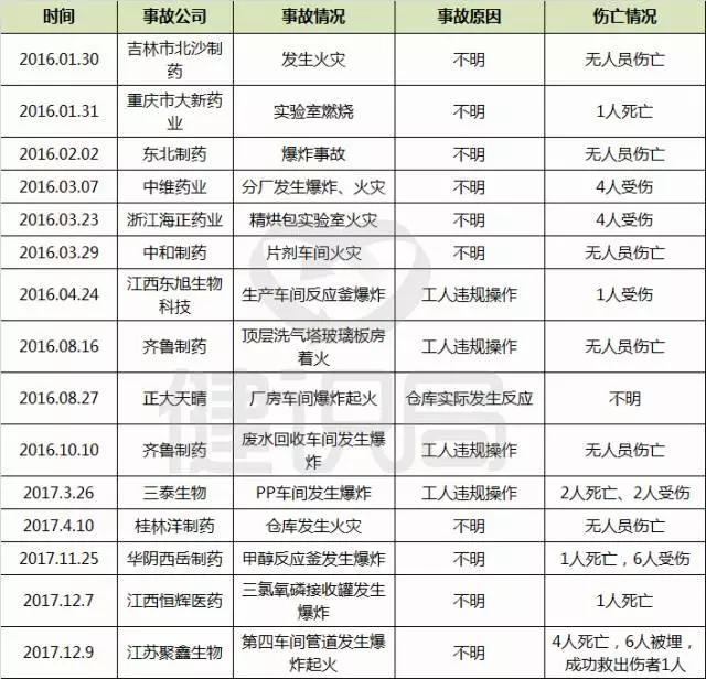 2016年,齊魯制藥在端端兩個(gè)月內(nèi),連續(xù)發(fā)生頂層洗氣塔玻璃板房著火、廢水回收車間爆炸事故。而據(jù)媒體報(bào)道,2011年——2014年間,哈藥集團(tuán)先后4次發(fā)生火災(zāi),曾引發(fā)信譽(yù)質(zhì)疑。
