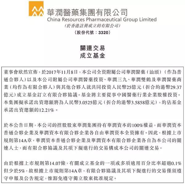 就在上海醫(yī)藥積極與康德樂洽談收購細(xì)節(jié)時(shí),今年11月,華潤醫(yī)藥發(fā)布公告稱,與漢威華酉、漢威華德、華潤三九和華潤雙鶴,共同投資人民幣25億元成立基金,計(jì)劃用于未來的渠道投資,重點(diǎn)擴(kuò)張藥品流通領(lǐng)域業(yè)務(wù)。