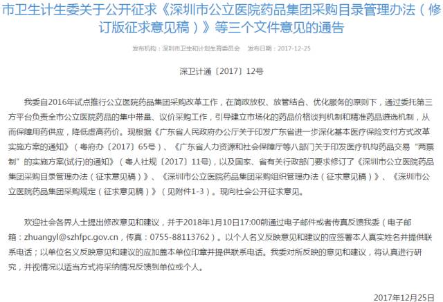 今日(12月25日),深圳衛(wèi)計委發(fā)布三個文件進行意見征求: