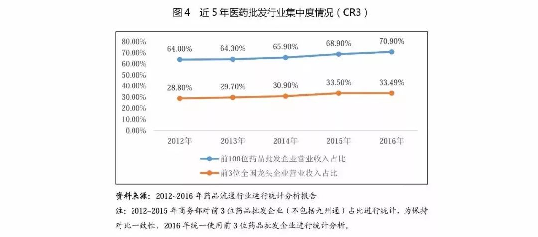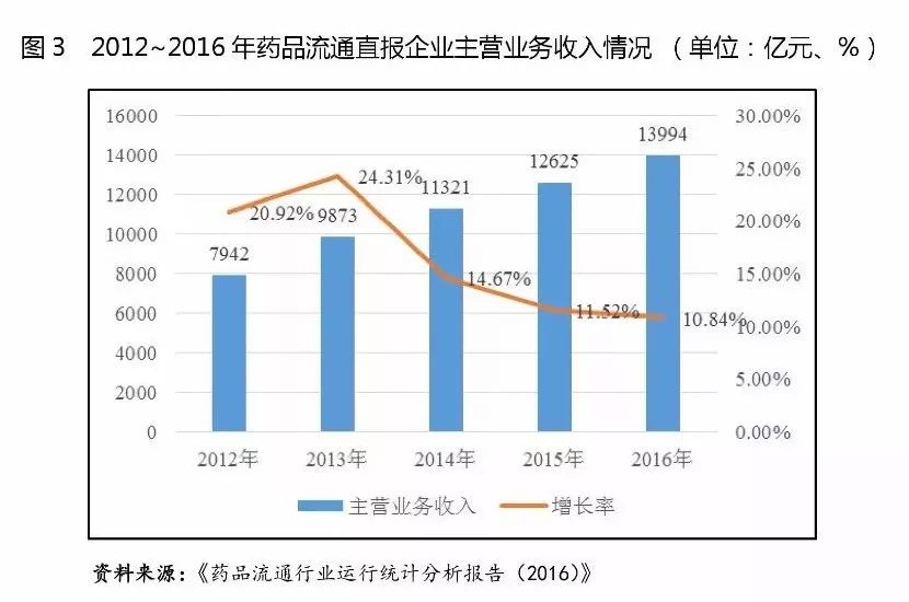 (2)從經(jīng)營指標來看,醫(yī)藥流通企業(yè)資產(chǎn)周轉(zhuǎn)速度普通高于其他行業(yè),其中批發(fā)企業(yè)存貨周轉(zhuǎn)速度普遍高于醫(yī)藥零售企業(yè),2016年,12家醫(yī)藥批發(fā)企業(yè)的存貨周轉(zhuǎn)次數(shù)中位數(shù)為7.76次,而2家醫(yī)藥零售企業(yè)的存貨周轉(zhuǎn)次數(shù)中位數(shù)為3.39次。醫(yī)藥零售企業(yè)存貨周轉(zhuǎn)次數(shù)明顯小于醫(yī)藥批發(fā)企業(yè),主要系醫(yī)藥批發(fā)企業(yè)較醫(yī)藥零售企業(yè)相比,采購和銷售的規(guī)模普遍較大,采購和營銷網(wǎng)絡(luò)覆蓋比較全面,且普遍具有更加高效及現(xiàn)代化的物流配送體系,由于批發(fā)企業(yè)所處的產(chǎn)業(yè)鏈的環(huán)節(jié)附加值較低,企業(yè)盈利能力普遍較低,只有不斷擴大銷售規(guī)模,提高經(jīng)營效率,才能實現(xiàn)盈利。