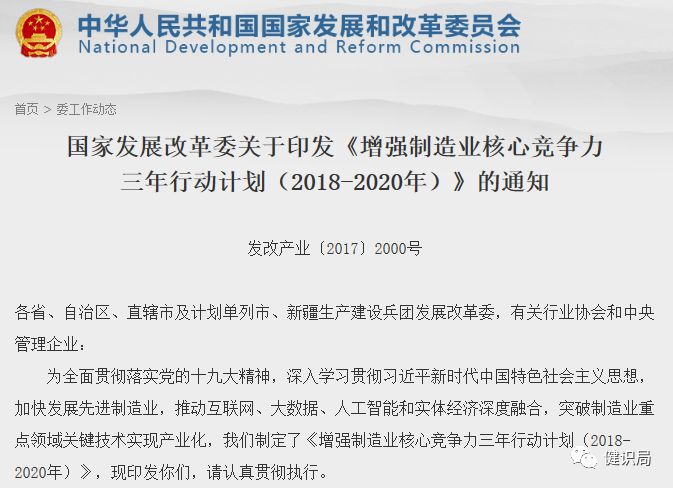 國家發(fā)改委26日發(fā)布《增強制造業(yè)核心競爭力三年行動計劃(2018-2020 年)》,并為高端藥品和高端醫(yī)療器械專章定制關(guān)鍵技術(shù)產(chǎn)業(yè)化實施方案。