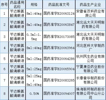 附:芐達(dá)賴(lài)氨酸滴眼液品種名單