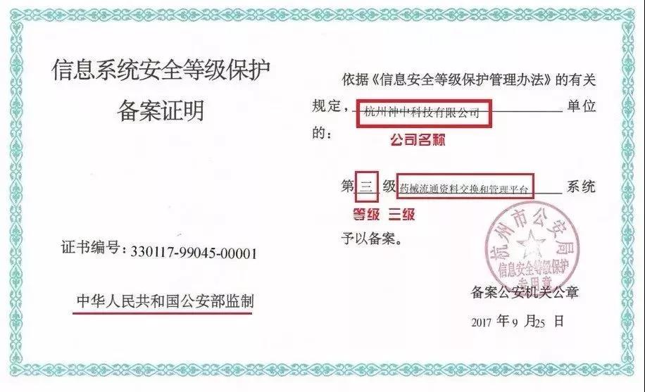 神中科技研發(fā)的“首營資料電子化電子交換平臺”,通過了國家信息安全等級保護(hù)三級認(rèn)證,有效保障了平臺用戶信息安全、隱私安全以及資料安全,體現(xiàn)了平臺的科學(xué)、嚴(yán)謹(jǐn)、公正性。印證了平臺信息系統(tǒng)安全管控水平,體現(xiàn)了神中科技為用戶提供安全、放心的藥品流通信息管理服務(wù)的宗旨。