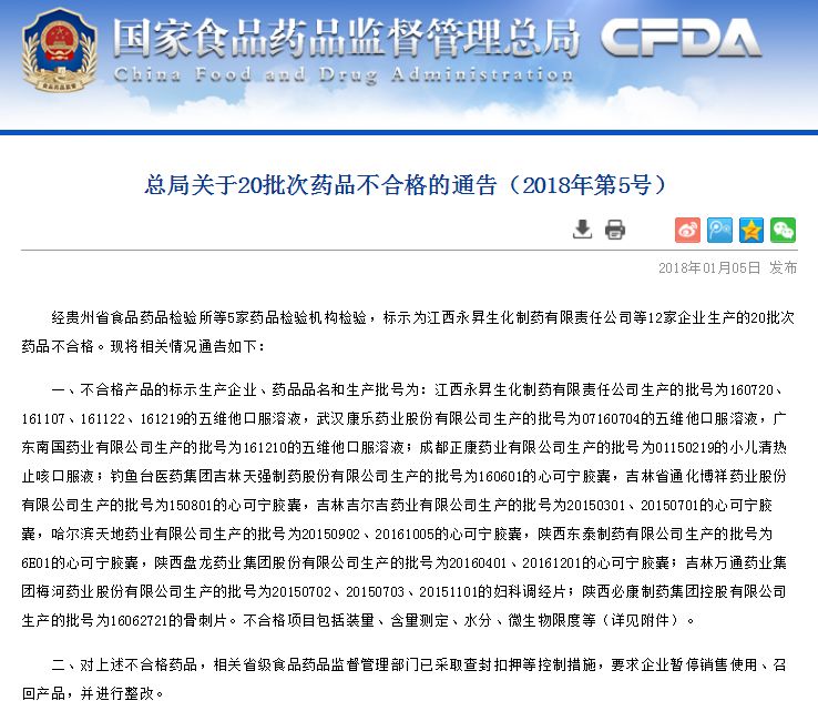 全國召回!CFDA:這12家企業(yè)20批次藥品不合格