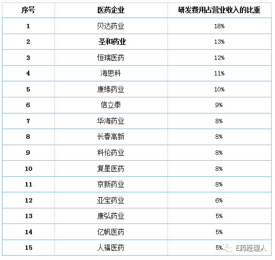 根據(jù)同花順數(shù)據(jù)統(tǒng)計(jì),與研發(fā)費(fèi)用6000萬元以上的可比上市醫(yī)藥企業(yè)比較,研發(fā)投入占營業(yè)收入的比例圣和藥業(yè)排名第二。