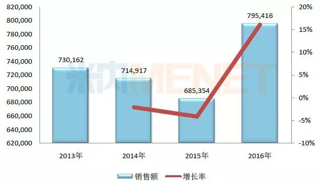 圖1:中國公立醫(yī)療機(jī)構(gòu)終端中成藥注射劑年度銷售趨勢(單位:萬元)