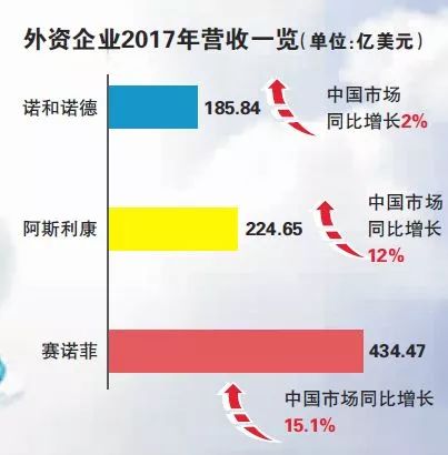 中國市場(chǎng)同樣為賽諾菲和阿斯利康的收入貢獻(xiàn)了重要力量。一直以來中國區(qū)都是賽諾菲的重要市場(chǎng),與本土企業(yè)展開合作,是法國企業(yè)在華尋求更大增長的主要措施。2017年,賽諾菲實(shí)現(xiàn)總收入434.47億美元,同比增長3.6%。新興市場(chǎng)同比增長6%,這得益于中國市場(chǎng)的強(qiáng)勁表現(xiàn),同比增長15.1%。