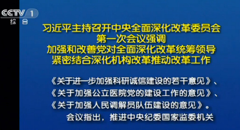 3月28日,新聞聯(lián)播報(bào)道,主席主持召開“中央全面深化改革委員會(huì)第一次會(huì)議”。他強(qiáng)調(diào),深化黨和國(guó)家機(jī)構(gòu)改革全面啟動(dòng),標(biāo)志著全面深化改革進(jìn)入了一個(gè)新階段。