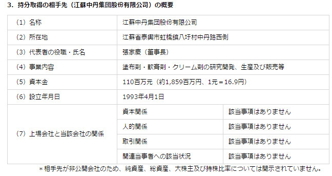 對(duì)于在中國成立總公司的理由,小林制藥表示,通過設(shè)立中國總公司,不僅直接控制目前在中國的業(yè)務(wù),包括此次并購的中丹制藥,實(shí)現(xiàn)集團(tuán)的運(yùn)營;另外,以達(dá)到重視中國市場,擴(kuò)大業(yè)務(wù)的需求,總公司作為當(dāng)?shù)丶瘓F(tuán)公司,能夠更好的在經(jīng)營管理及投資方面更快速的應(yīng)對(duì)。