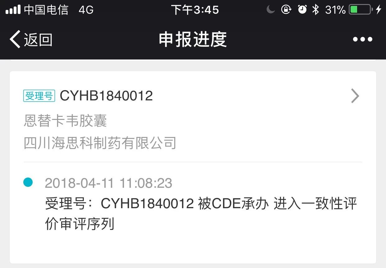 4月11日,Insight一致性評價每日動態(tài)提醒海思科藥業(yè)恩替卡韋膠囊被CDE承辦。