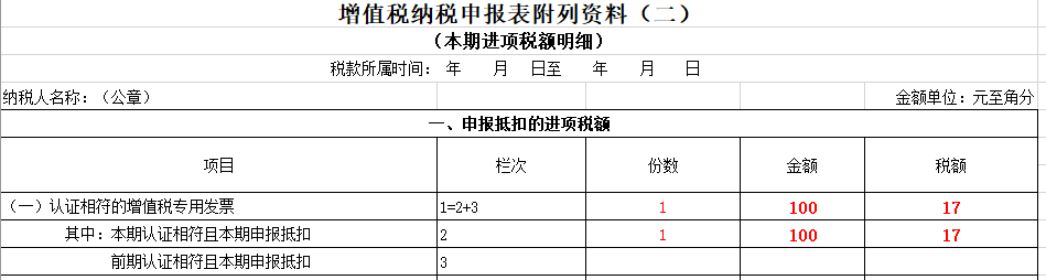比如:A公司2018年5月5日才收到供應商2018年4月30日開具的增值稅專用發(fā)票一張,發(fā)票金額100,稅率17%,稅額17。