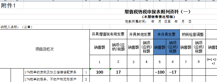 比如,A公司2018年4月發(fā)生了一筆應稅收入,金額100,稅率17%,稅額17,由于無法取得對方開票信息,暫未開票,會計在5月申報表進行了未開票收入的申報。
