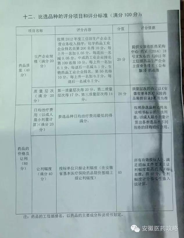 總分100分:價(jià)格分為50分,質(zhì)量及國(guó)家基藥30分,專家評(píng)分20分。