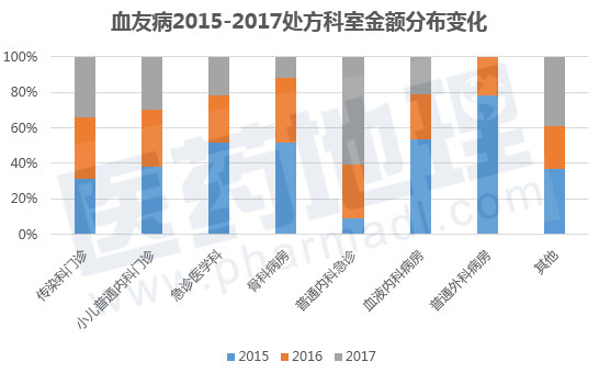 國(guó)內(nèi)血友病用藥處方科室分布變化