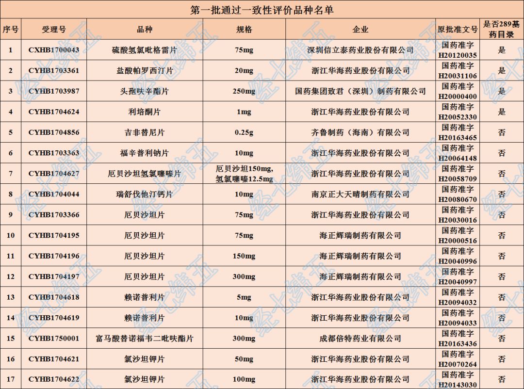 近日(5月22日),國(guó)家藥品監(jiān)督管理局公布第四批通過仿制藥一致性評(píng)價(jià)名單,至此,通過一致性評(píng)價(jià)已有41品規(guī)。其中,屬于289基藥目錄的僅有12個(gè)。具體名單如下: