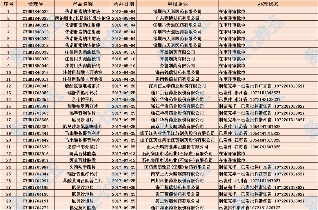 申請(qǐng)一致性評(píng)價(jià)品種一覽表