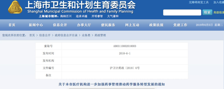 近日,上海市衛(wèi)計(jì)委正式發(fā)布《關(guān)于本市醫(yī)療機(jī)構(gòu)進(jìn)一步加強(qiáng)藥事管理推動(dòng)藥學(xué)服務(wù)轉(zhuǎn)型發(fā)展的通知》。