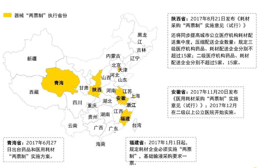 藥品“兩票制”已經(jīng)在全國順利執(zhí)行,部分省份也推出了關(guān)于耗材“兩票制”的實施細(xì)則,但由于器械完全不同于藥品的復(fù)雜性,價格體系不透明不規(guī)范,中間流通環(huán)節(jié)的灰色地帶更多,器械“兩票制”在全國范圍內(nèi)實施還有待條件的進(jìn)一步成熟。