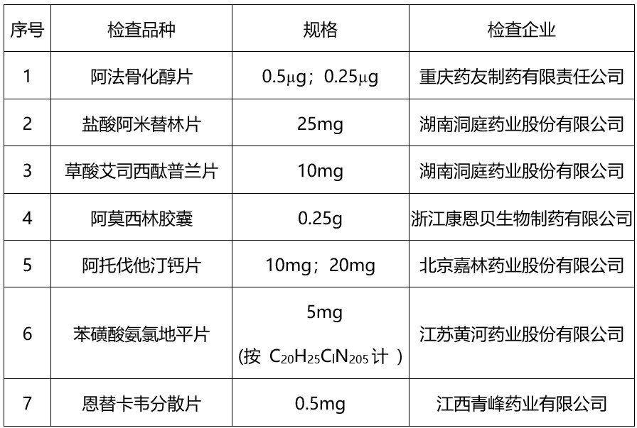 2017年11月23日,原國(guó)家食品藥品監(jiān)督管理總局啟動(dòng)首批仿制藥一致性評(píng)價(jià)品種的有因檢查工作。首批現(xiàn)場(chǎng)檢查的7個(gè)品種均在完成立卷審查的基礎(chǔ)上開(kāi)展,共派出6個(gè)檢查組對(duì)7個(gè)品種的7家研制和生產(chǎn)單位進(jìn)行了現(xiàn)場(chǎng)檢查,涉及9個(gè)場(chǎng)地。同時(shí)本年度還對(duì)5個(gè)品種(涉及2家企業(yè))的原研地產(chǎn)化產(chǎn)品進(jìn)行了現(xiàn)場(chǎng)檢查。具體檢查品種見(jiàn)下表: