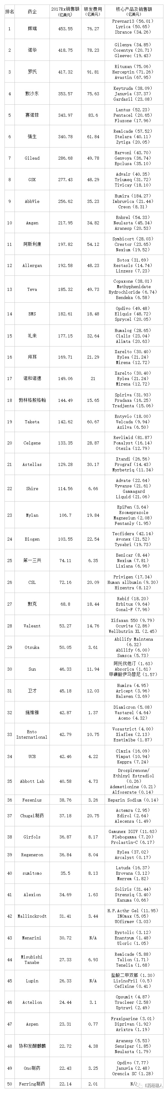2018年全球制藥企業(yè)TOP50