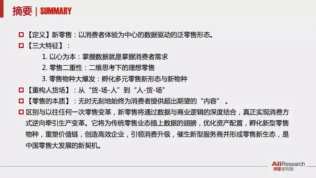 區(qū)別與以往任何一次零售變革,新零售將通過數(shù)據(jù)與商業(yè)邏輯的深度結(jié)合,真正實現(xiàn)消費方式逆向牽引生產(chǎn)變革。它將為傳統(tǒng)零售業(yè)態(tài)插上數(shù)據(jù)的翅膀,優(yōu)化資產(chǎn)配置,孵化新型零售 物種,重塑價值鏈,創(chuàng)造高效企業(yè),引領(lǐng)消費升級,催生新型服務(wù)商并形成零售新生態(tài),是 中國零售大發(fā)展的新契機。