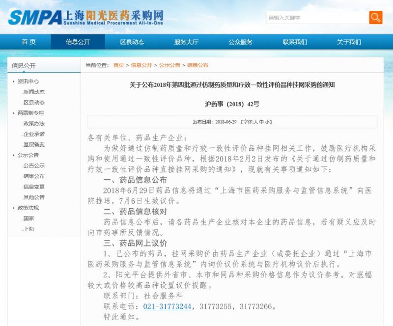 6月29日,上海陽光醫(yī)藥采購網(wǎng)發(fā)布了《關(guān)于公布2018年第四批通過仿制藥質(zhì)量和療效一致性評價(jià)品種掛網(wǎng)采購的通知》。