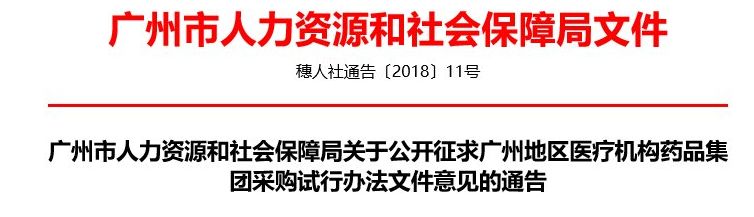 6月28日,廣州市人力資源和社會(huì)保障局發(fā)布了《關(guān)于公開征求廣州地區(qū)醫(yī)療機(jī)構(gòu)藥品集團(tuán)采購試行辦法文件意見的通告》。