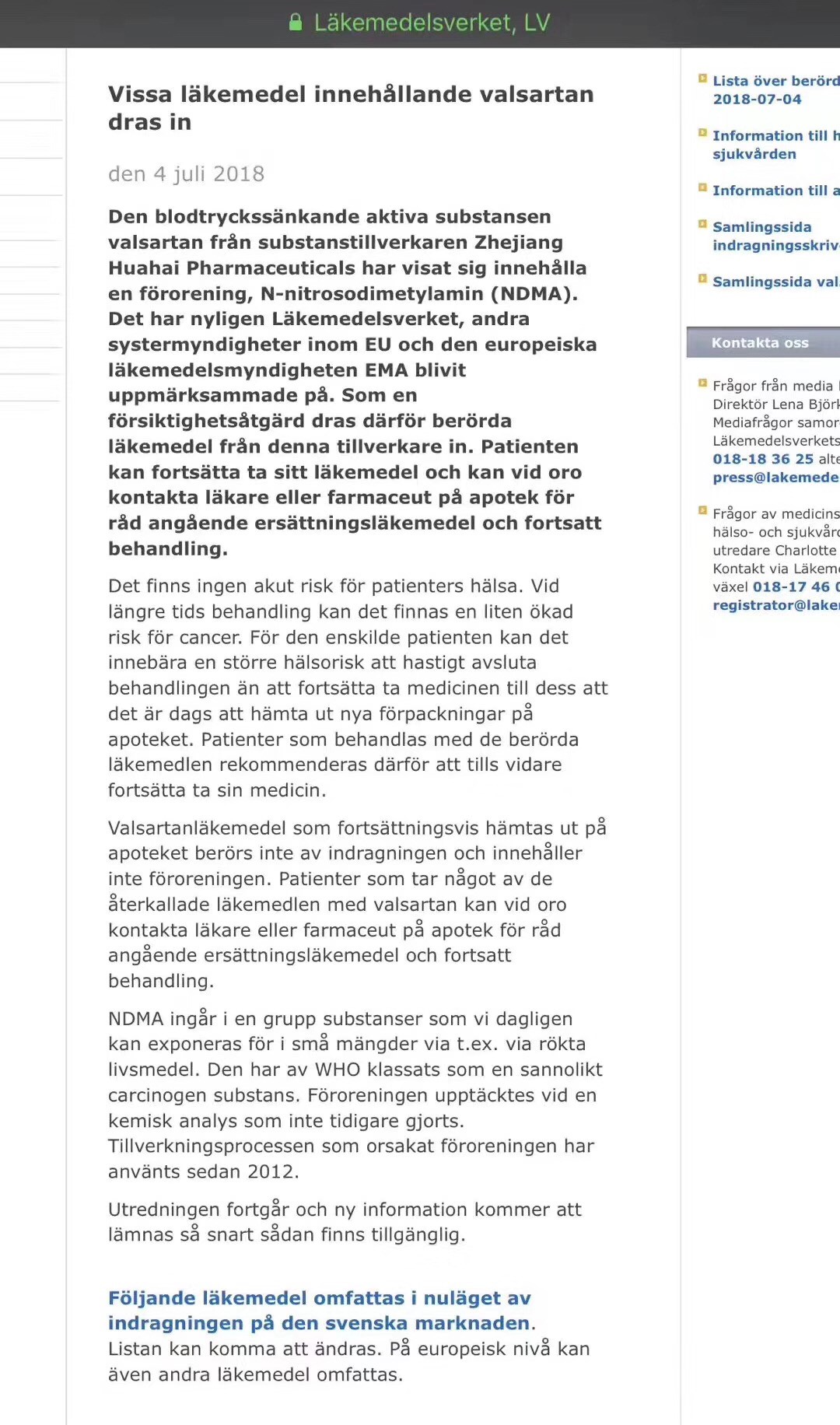 稍晚華海藥業(yè)公告證實其對纈沙坦原料藥生產(chǎn)工藝進(jìn)行優(yōu)化評估時,發(fā)現(xiàn)并檢定其中一未知雜質(zhì)為亞硝基二甲胺(NDMA),目前已立即停止了現(xiàn)有纈沙坦原料藥的商業(yè)生產(chǎn)與供應(yīng),并向客戶和相關(guān)監(jiān)管機(jī)構(gòu)進(jìn)行了主動告知。對此,華海藥業(yè)董秘祝永華7月6日晚間對外回應(yīng)表示EMA召回事項尚在核實,一旦確認(rèn)后續(xù)會進(jìn)行公告,而相關(guān)纈沙坦制劑應(yīng)該也已經(jīng)停產(chǎn),但是尚有存貨并未停供。