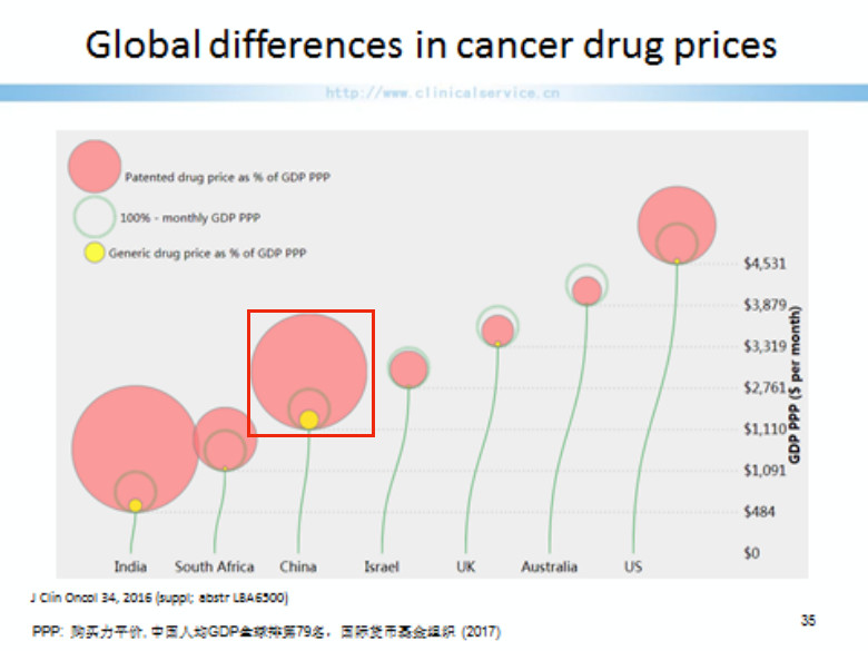 受專利保護(hù)的抗癌藥的價(jià)格,是中國人均購買力的1.5倍(如下圖紅色框)。
