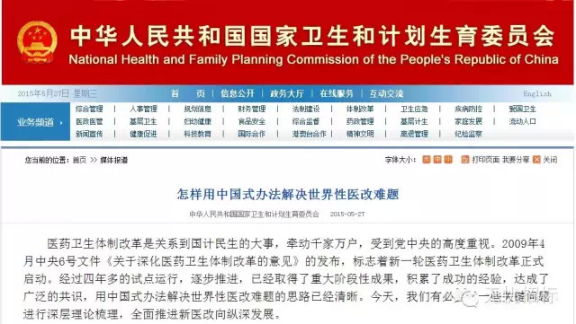衛(wèi)計委刊文:怎樣用中國式辦法解決世界性醫(yī)改難題
