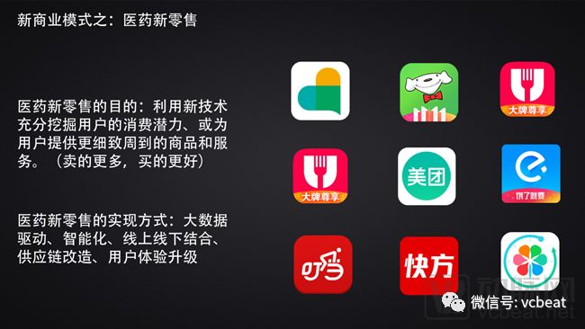互聯(lián)網(wǎng)+醫(yī)藥新零售主要指的是醫(yī)藥O2O模式,包括阿里健康O2O聯(lián)盟、京東到家、好藥師、叮當(dāng)快藥、快方送藥等。